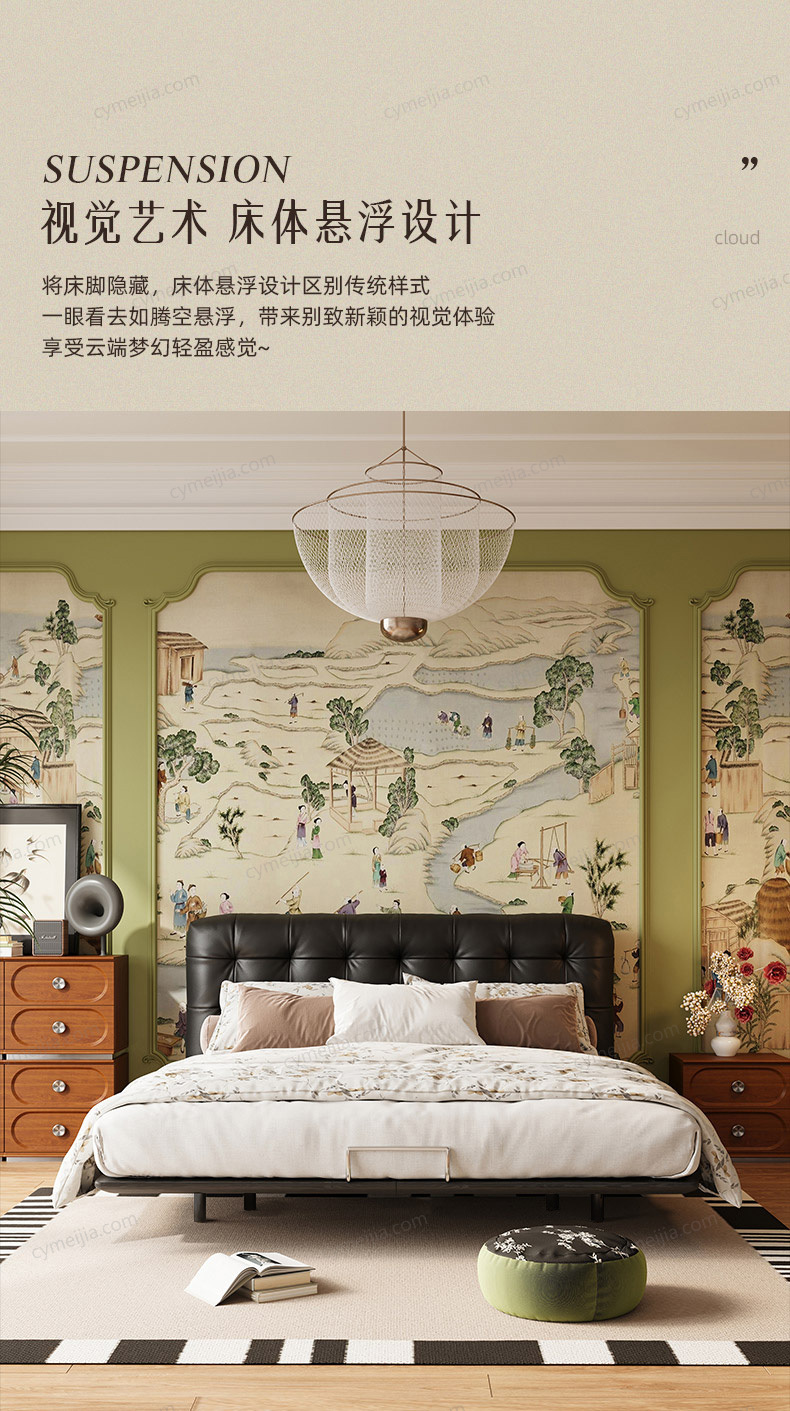 ☀ 悬浮灯带设计:悬浮设计搭配柔和暖光灯带,夜间点亮宛如云端悬浮,氛围感拉满。灯带还可作为起夜辅助照明,避免强光刺眼更贴心。