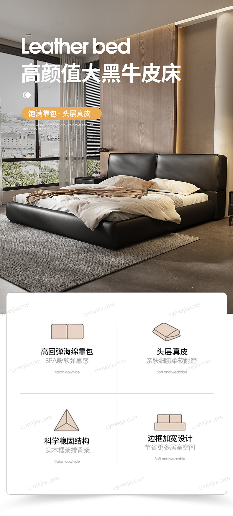 ☀ 意式极简双靠包设计,线条简洁流畅,低矮床身淡化笨重感,为卧室平添简约雅致,成为空间视觉亮点,轻松提升整体氛围。