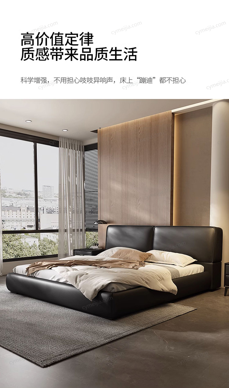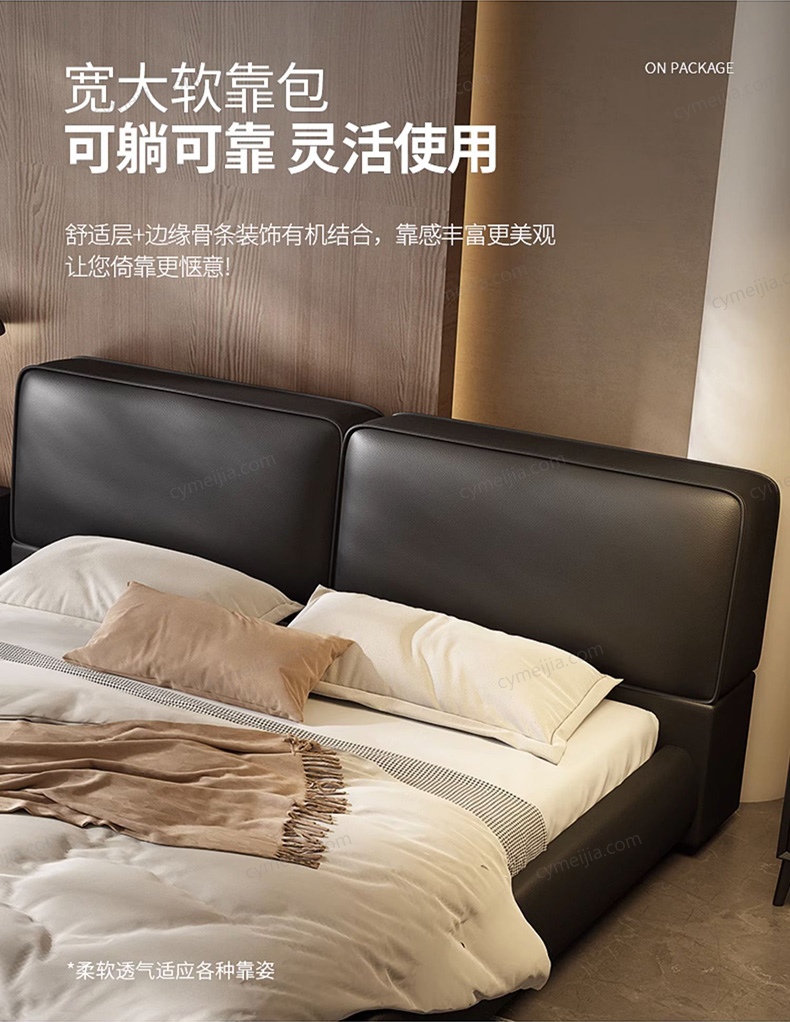 ☀ 意式极简双靠包设计,线条简洁流畅,低矮床身淡化笨重感,为卧室平添简约雅致,成为空间视觉亮点,轻松提升整体氛围。