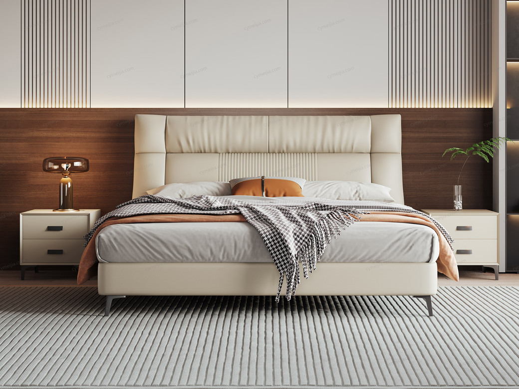 | 产品材质 : | 仿真皮+高密度海绵+俄罗斯落叶松实木框架+13公分枪黑五金脚+10公分松木排骨架 |