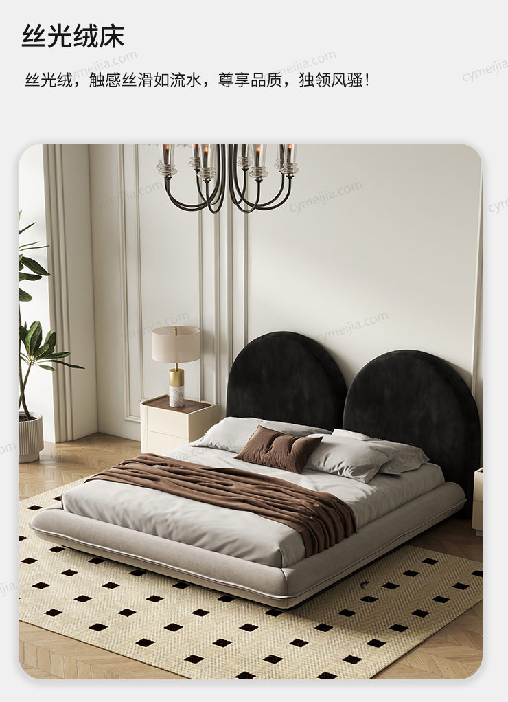 | 产品材质 : | 磨砂绒布+高密度海绵+俄罗斯落叶松实木框架+10公分松木排骨架 |