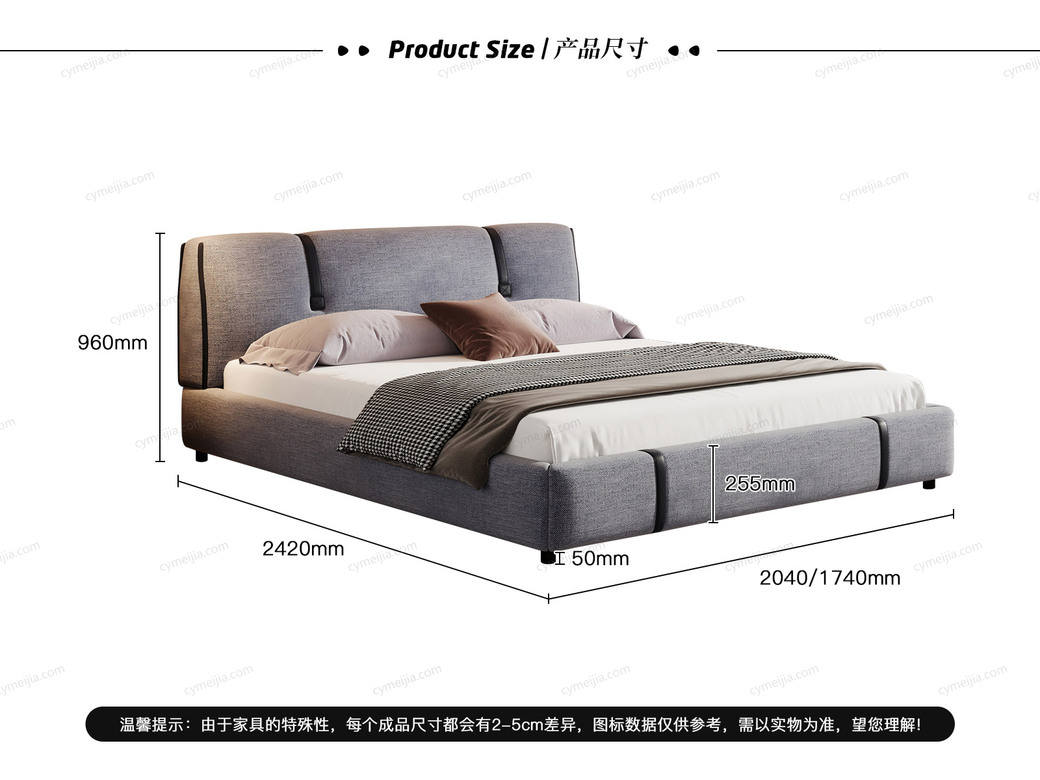 | 适配床垫 : | 长2000*宽1800*高220mm |