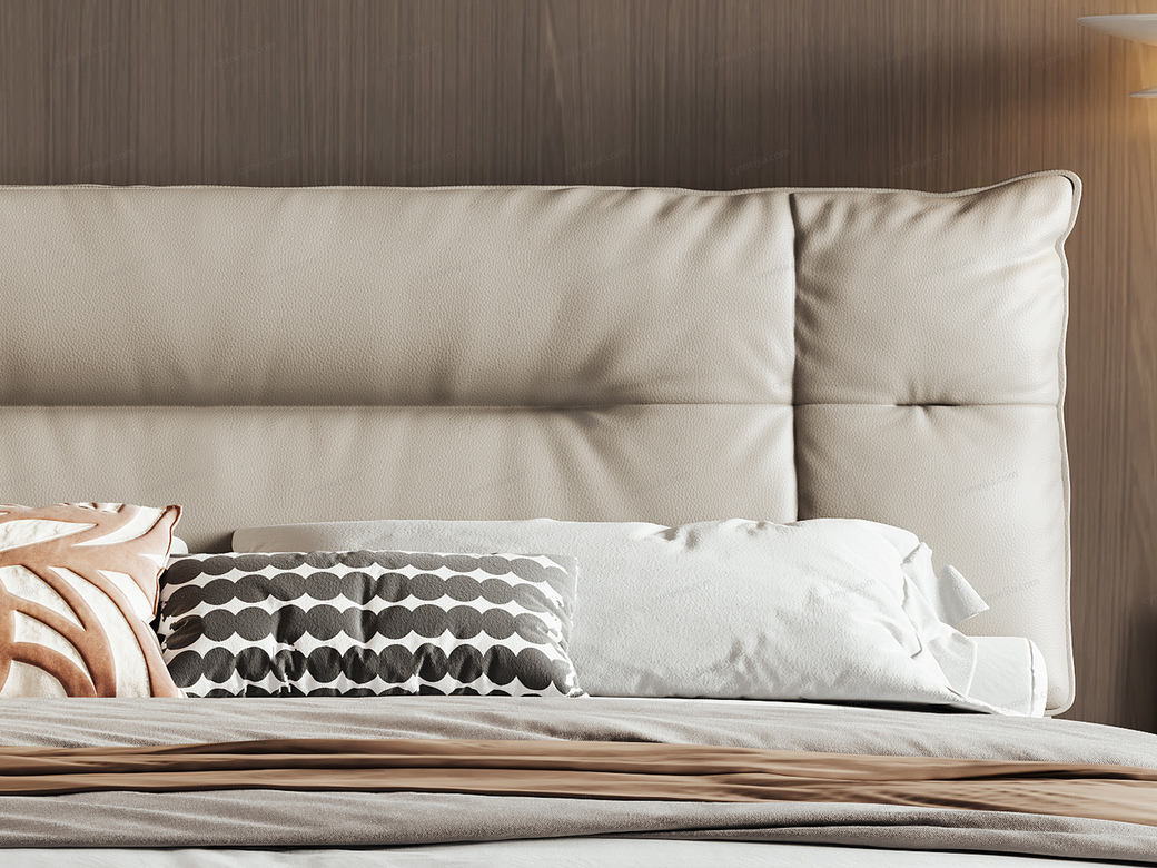 ☀ 采用不同深度的拉线工艺,将床头软包分割出不同的模块,并带出自然的褶皱,让其更具灵动感。