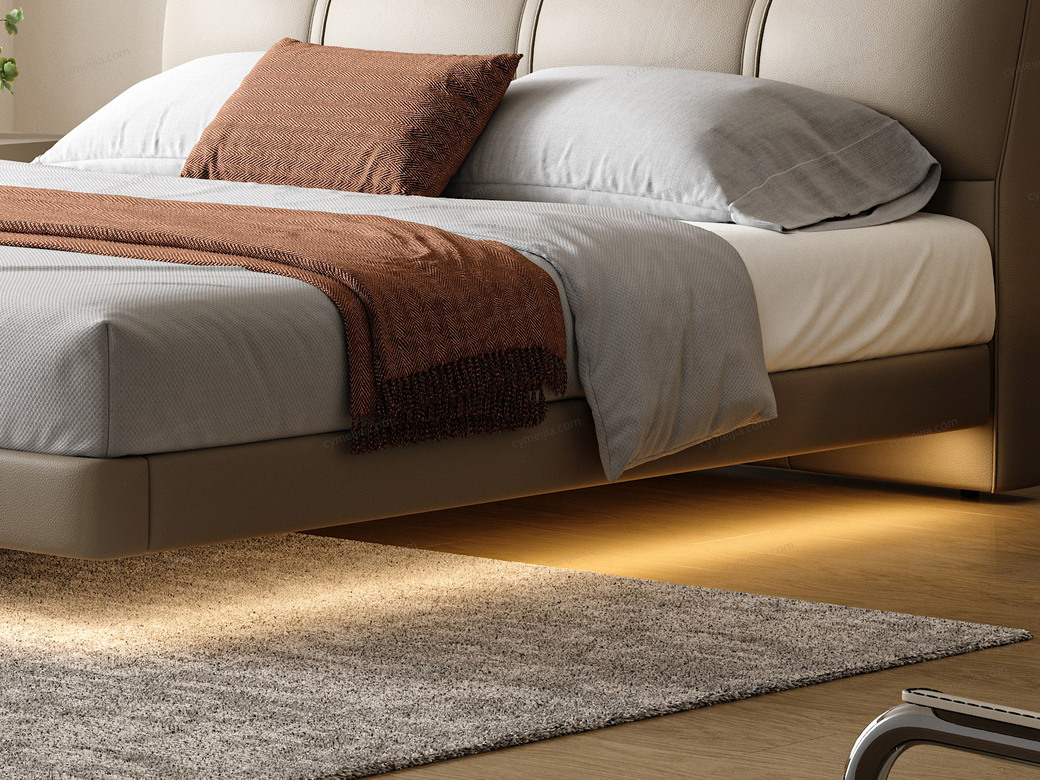 | 产品材质 : | 仿真皮+高密度海绵+俄罗斯落叶实木框架+灯带+碳素钢脚+十公分松木排骨架 |