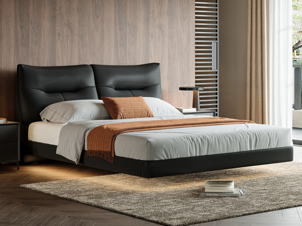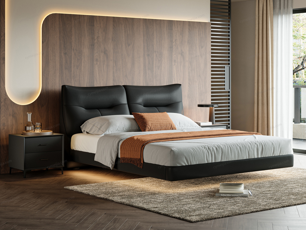 | 产品材质 : | 接触面进口头层黄牛皮+高密度海绵+俄罗斯落叶实木框架+灯带+十公分松木排骨架 |