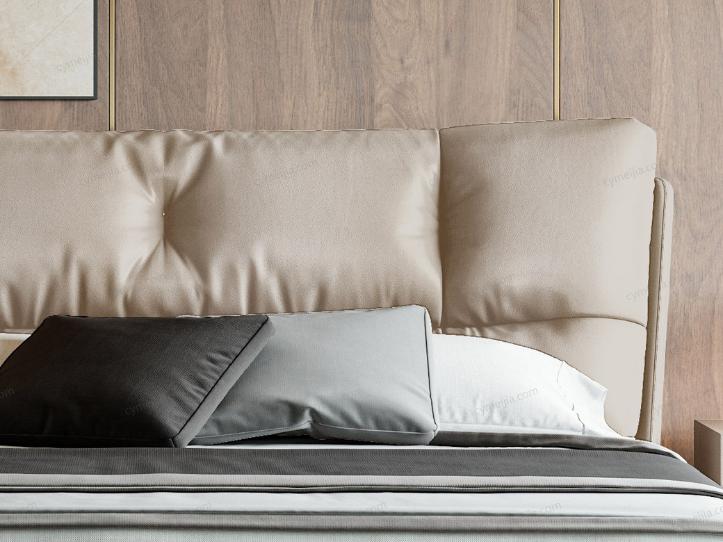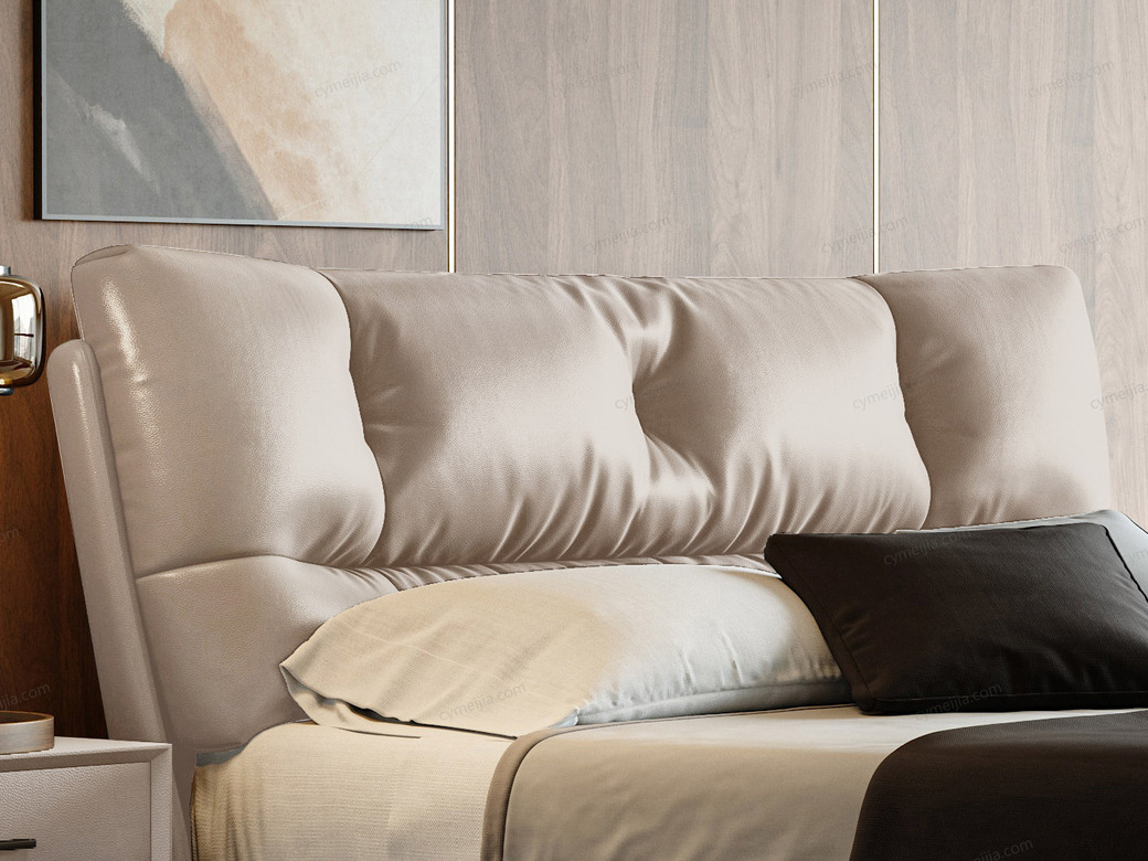 | 产品材质 : | 仿真皮+高密度海绵+羽绒+俄罗斯落叶实木框架+15公分脚+灯带+十公分松木排骨架 |