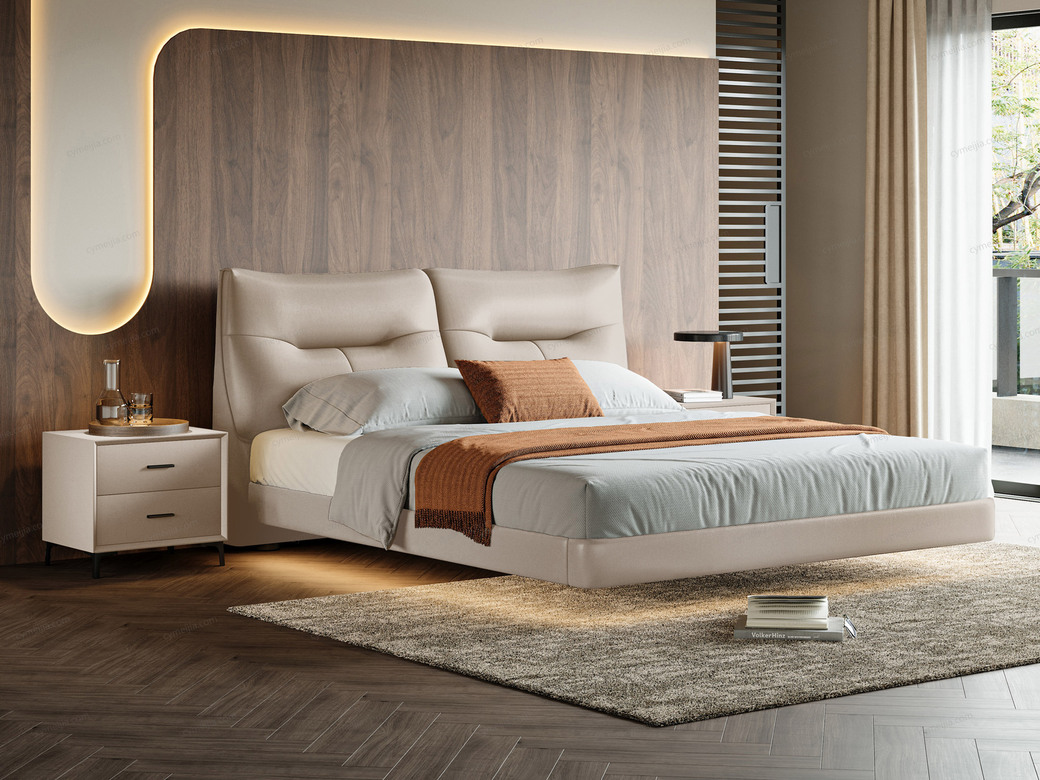 | 产品材质 : | 仿真皮+高密度海绵+俄罗斯落叶实木框架+15公分脚+灯带+十公分松木排骨架 |