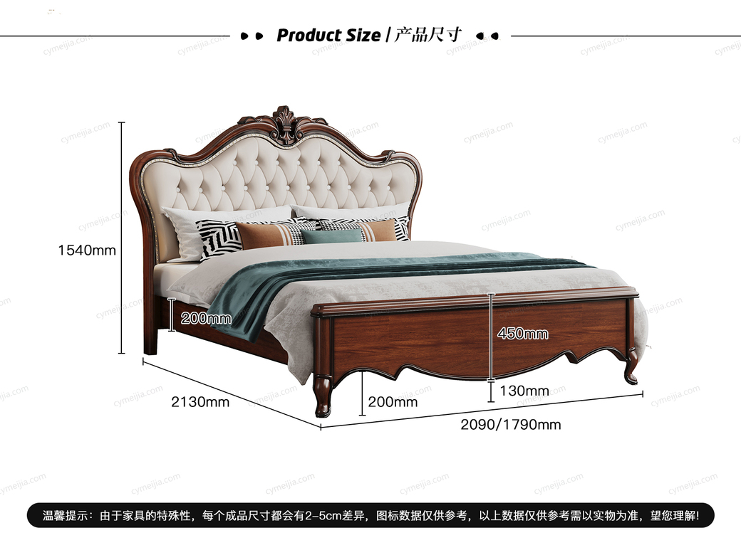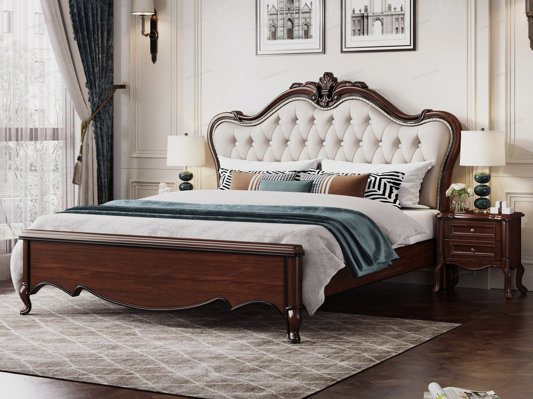 ☀ 经典设计:床头床尾融入波浪帷幔造型,线条优美富有韵律感,展现纯正美式家具的精致与浪漫,为卧室注入复古艺术气息。