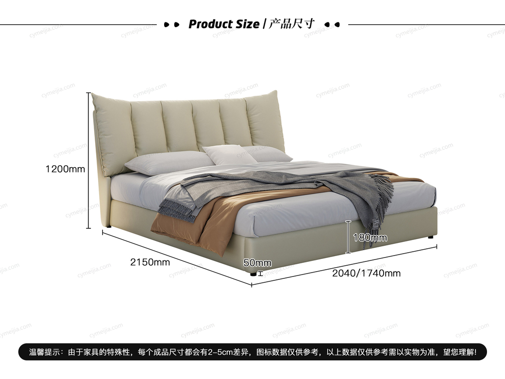 | 适配床垫 : | 长2000*宽1800*高230mm |