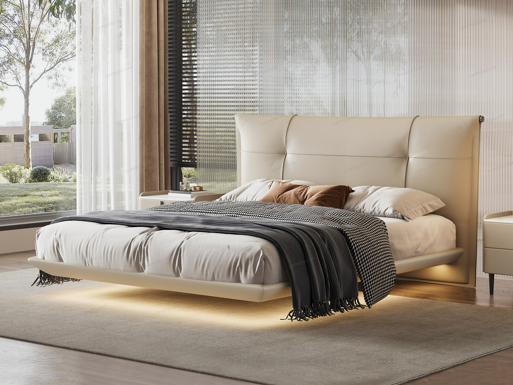 | 产品材质 : | 仿真皮+高密度海绵+俄罗斯落叶松实木框架+灯带+10公分松木排骨架+五金饰件 |