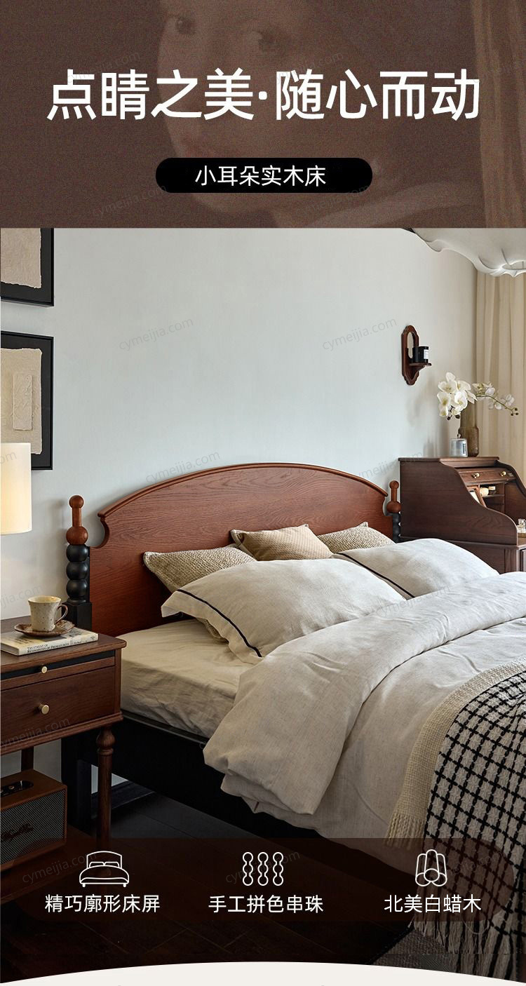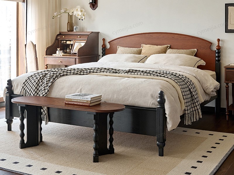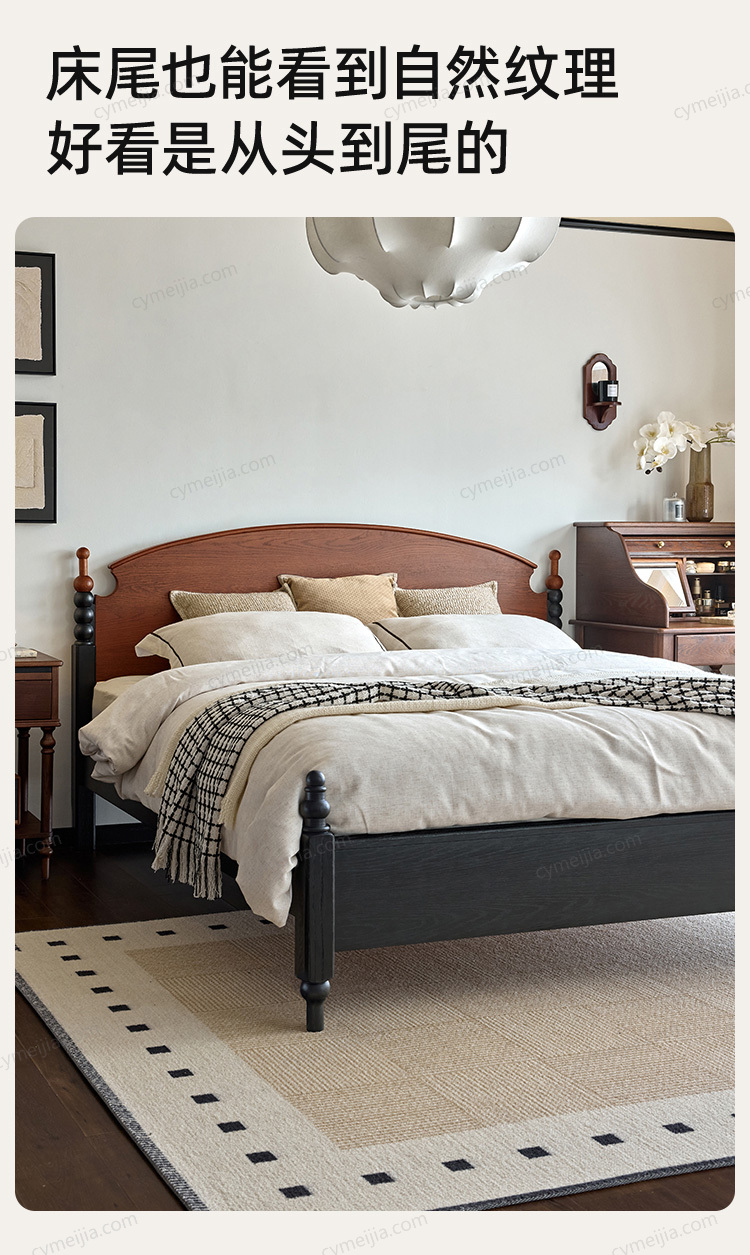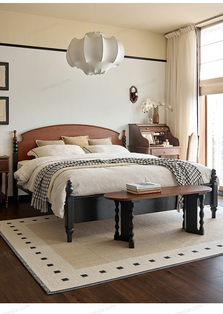☀ 优雅床屏:融合经典罗马立柱与拼色串珠元素,搭配优雅曲线床屏与圆润对称床尾柱,细节精致,彰显复古美学与设计感。