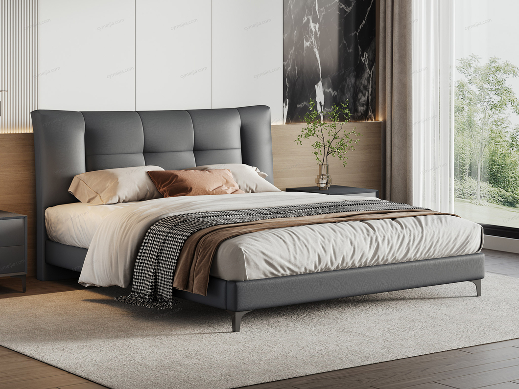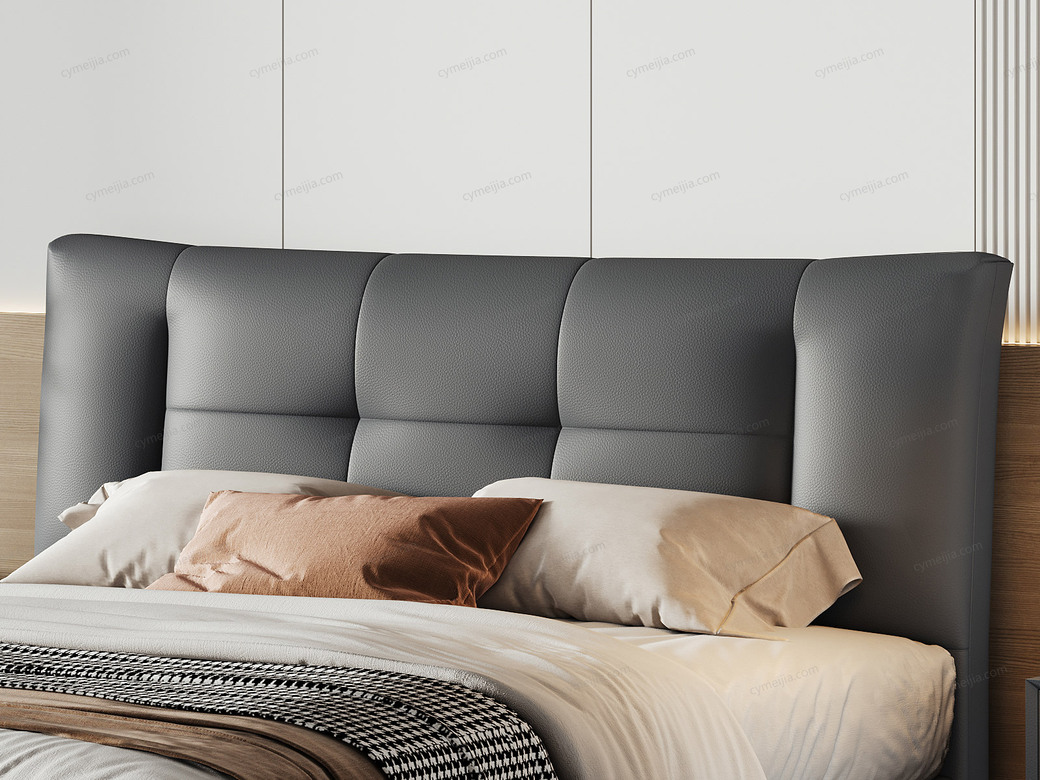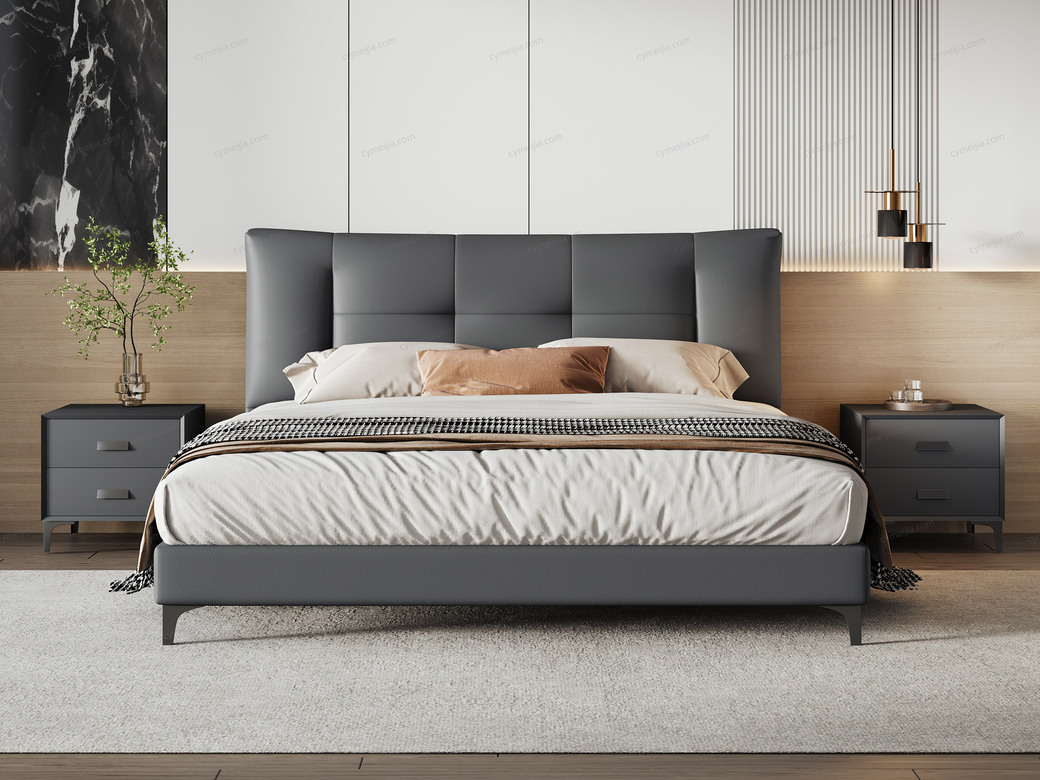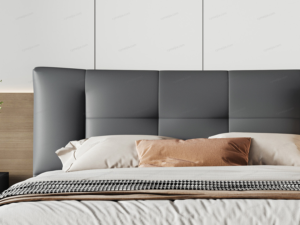 ☀ 采用高背式立体床头造型,层次分明且富有张力,呈现出强烈的现代极简风格,是卧室空间的视觉核心。