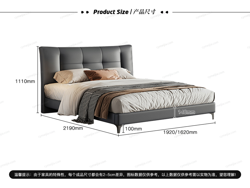 | 适配床垫 : | 长2000*宽1500*高220-250mm |