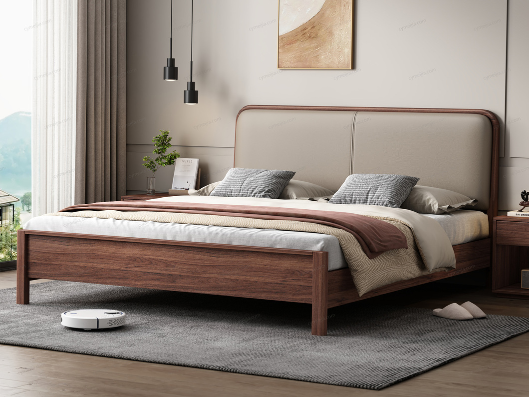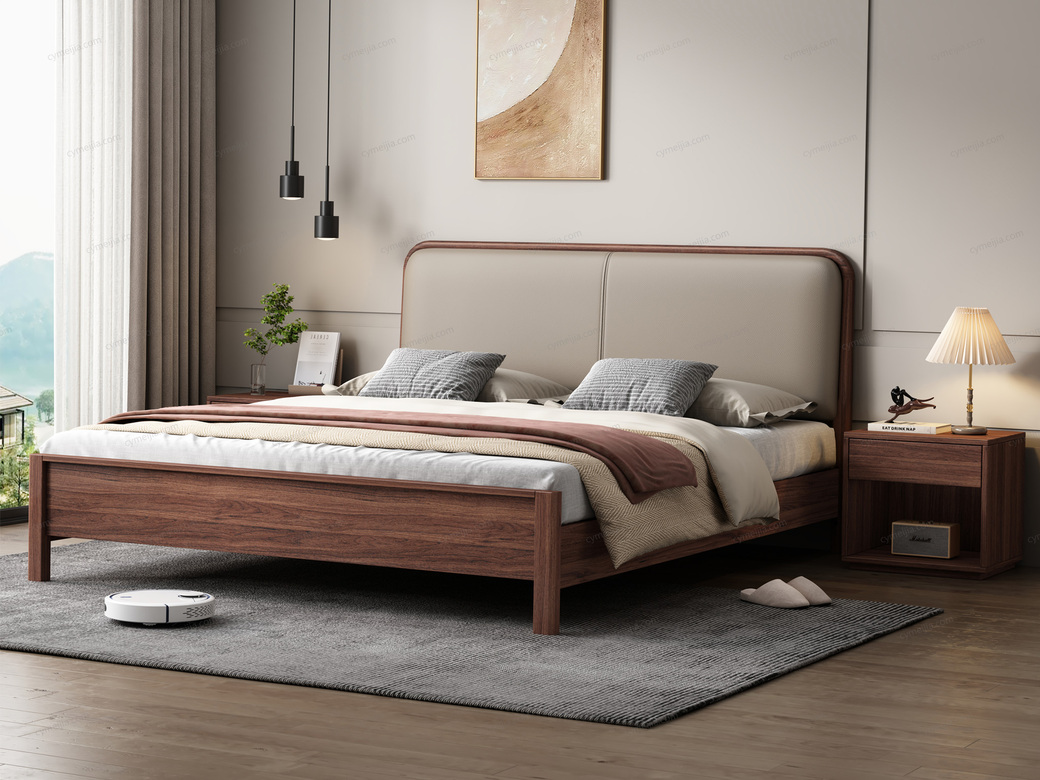 ◕ 精选进口黑胡桃木,完整保留木材天然纹理。每一道肌理都是时光的印记,让您的床成为世间独一份的自然艺术品。