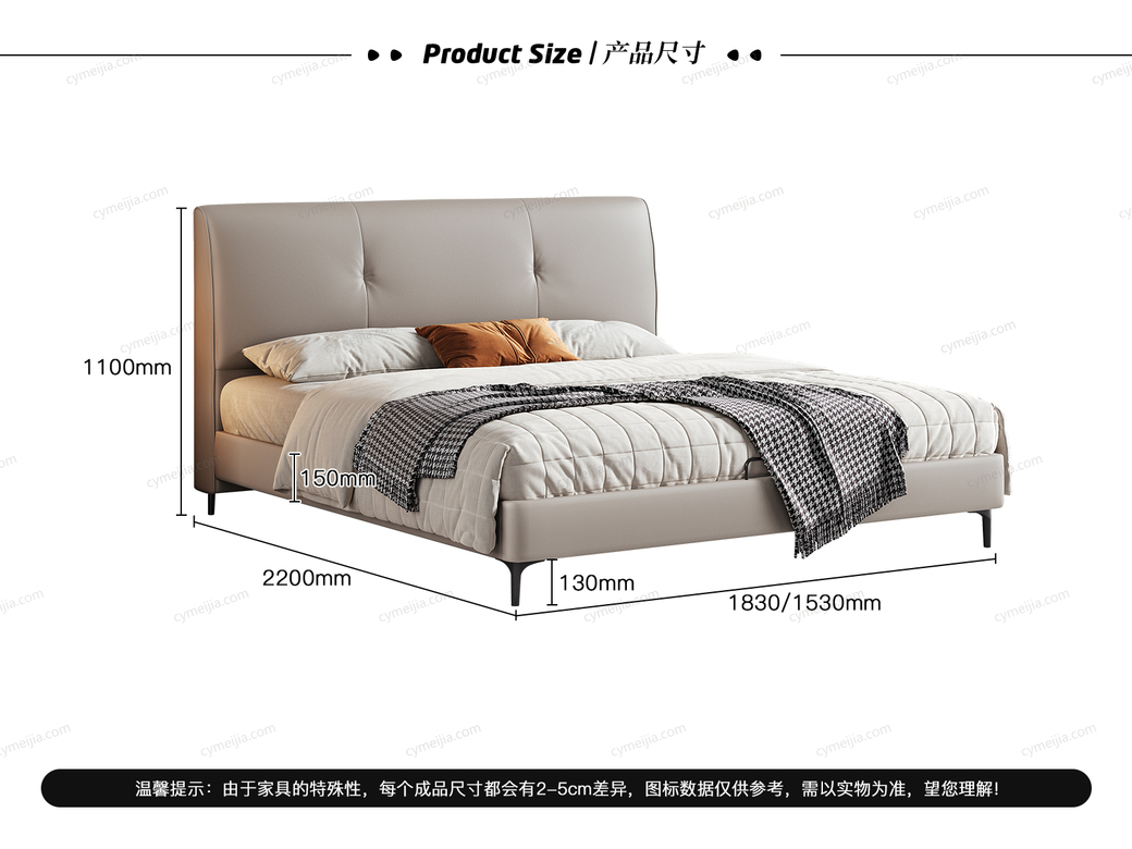 | 适配床垫 : | 长2000*宽1500*高210mm |