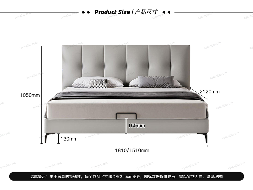 | 适配床垫 : 长2000*宽1500*高210mm | 是否可定制 : 支持定制尺寸/高箱/颜色,详情请咨询客服 | 包件数 : 3 | |