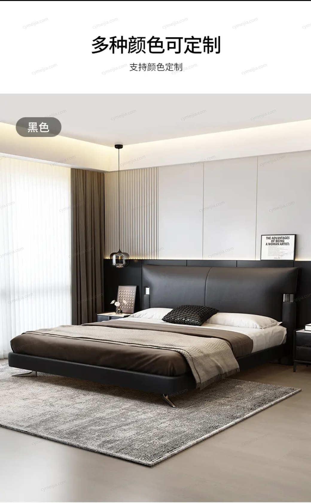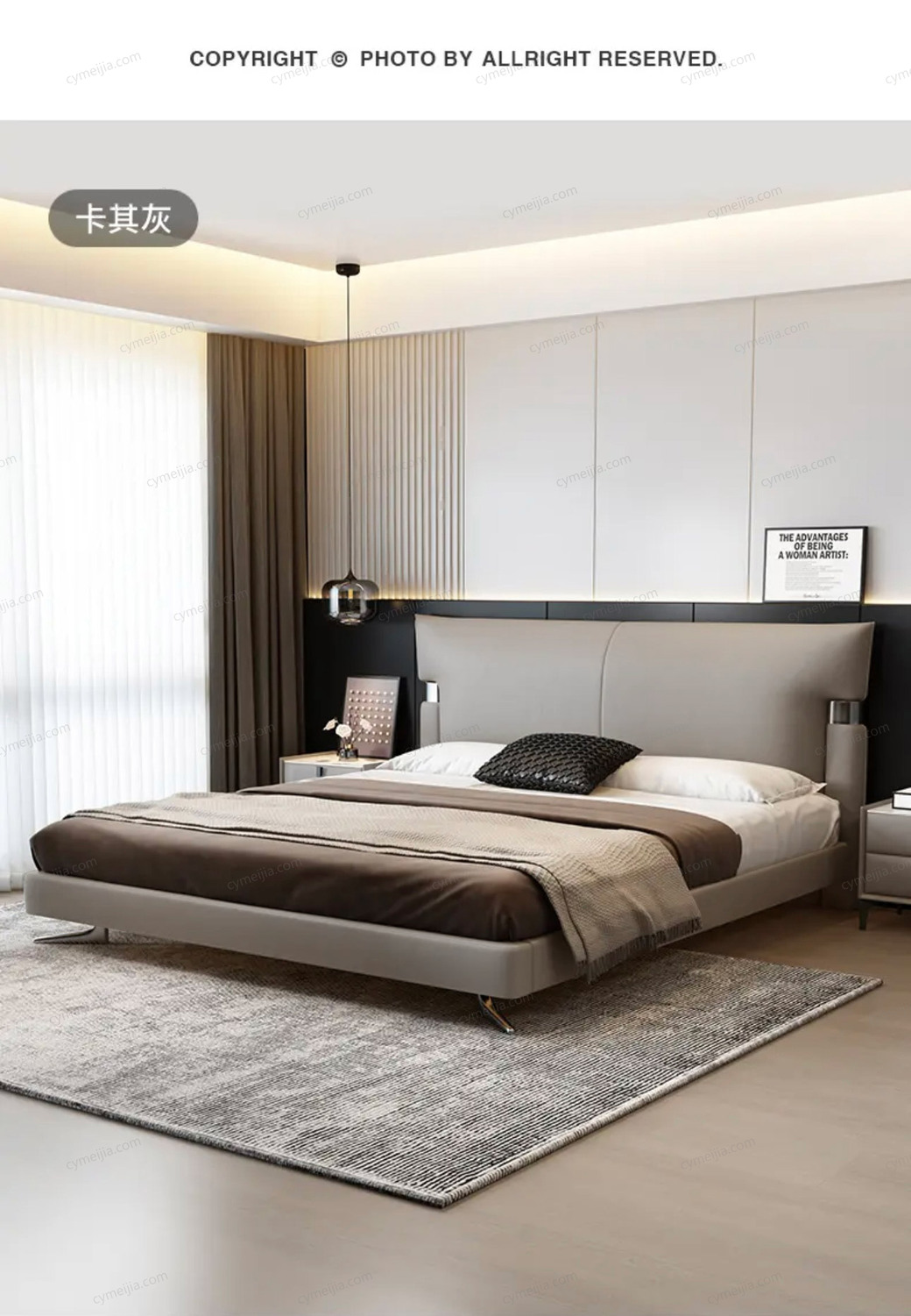 ☀ 采用大气的双拼式床头造型,线条简洁利落,呈现出强烈的现代感与立体感。床头中心的暗线缝工艺和床头两边的包边缝工艺走线平直顺滑。