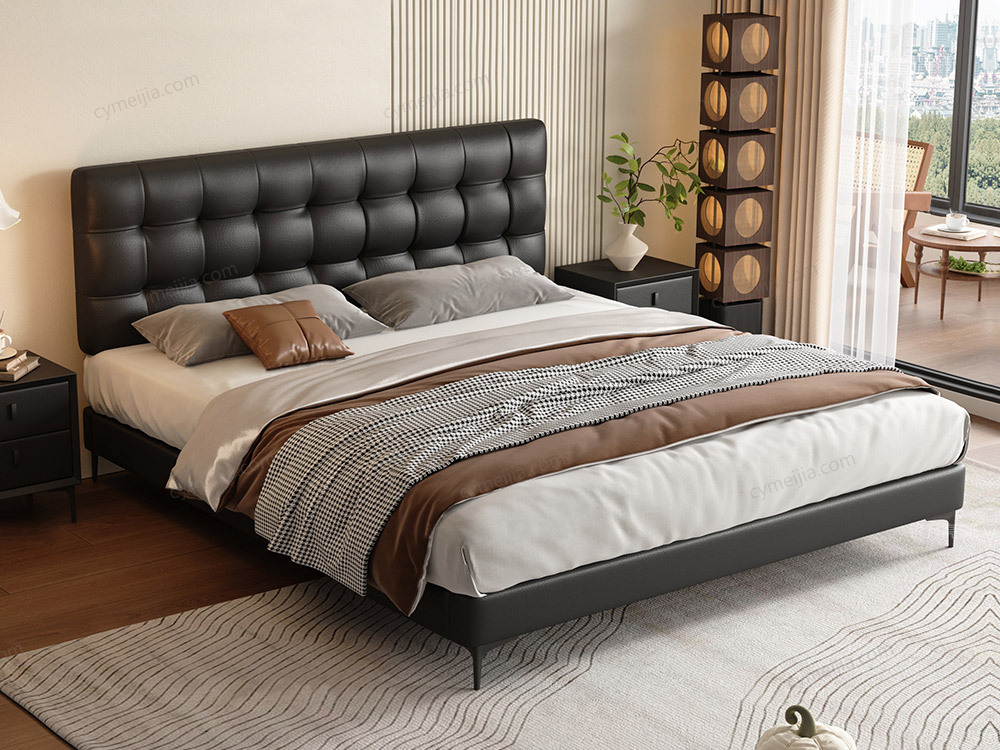 ☀ 床头软包采用经典的华夫格造型,经典的拉点设计形成视觉上的“编织'效果。