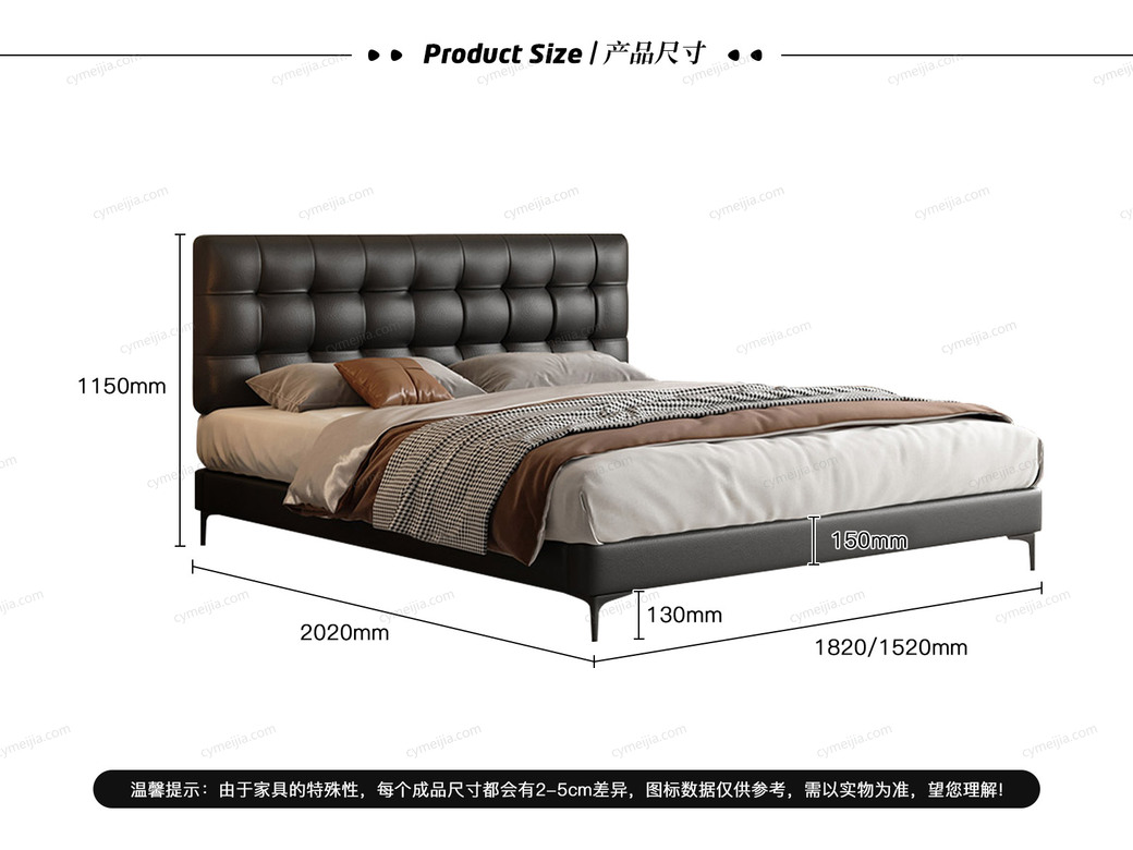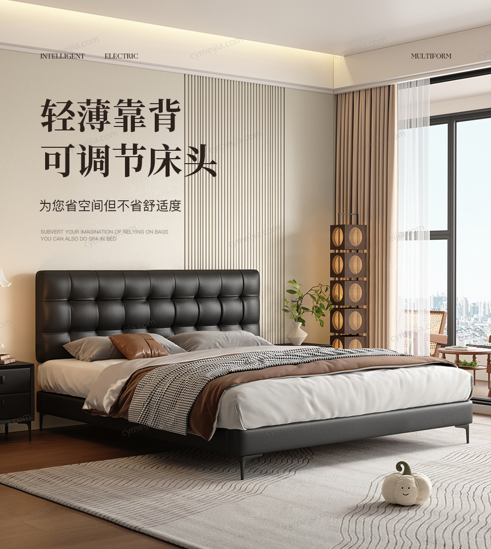 ☀ 床头采用可调节高度设计,床边采用齐边设计,释放出更多卧室空间,小户型首选。