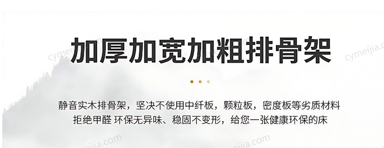 ☀ 静音实木排骨架:采用加粗加固全松木排骨架,整木裁切无拼接,无胶更环保。加宽加厚设计,稳固承托且静音,翻身无扰安睡整晚。