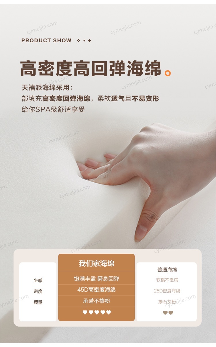 ◕ 高密度高回弹不掺粉海绵,柔软透气不易变形。