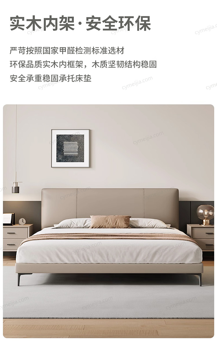 | 产品材质 : | 仿真皮+高密度海绵+俄罗斯落叶松实木框架+10公分松木排骨架 |