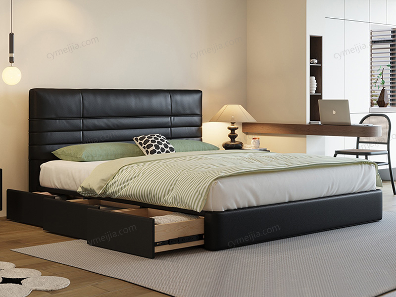 ☀ 侧面抽屉的设计兼顾颜值和实用性,落地设计又能让床不具有卫生死角。