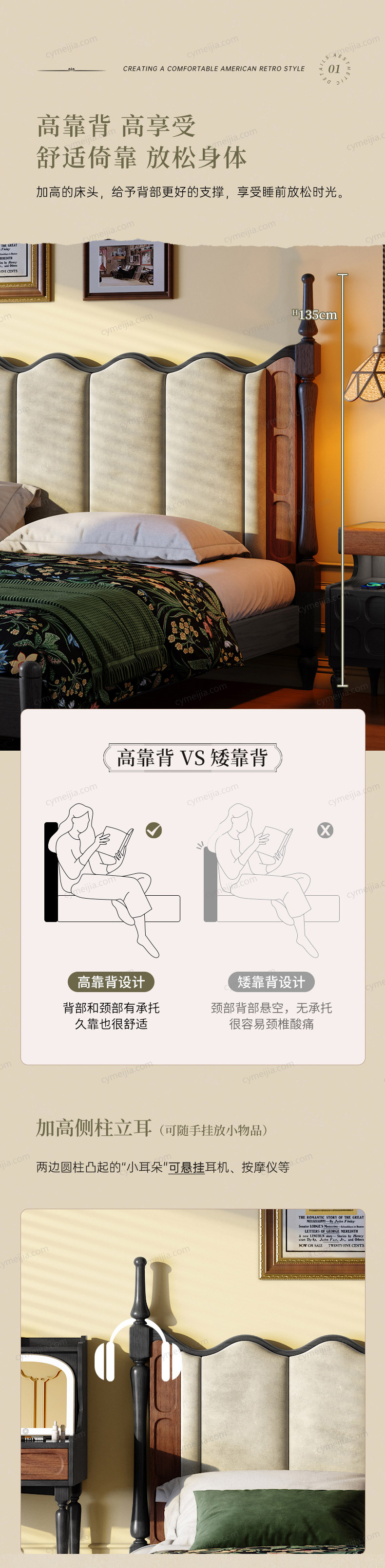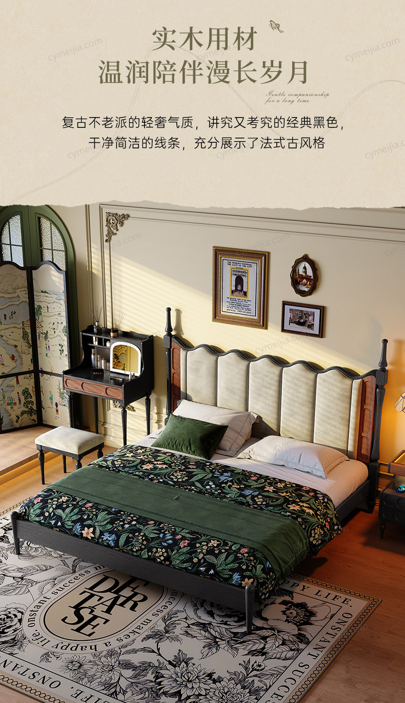 ☀ 波浪型高靠背设计,以自然海浪为灵感,勾勒出灵动优雅的曲线,整体营造出兼具自然诗意与复古格调的卧室氛围。