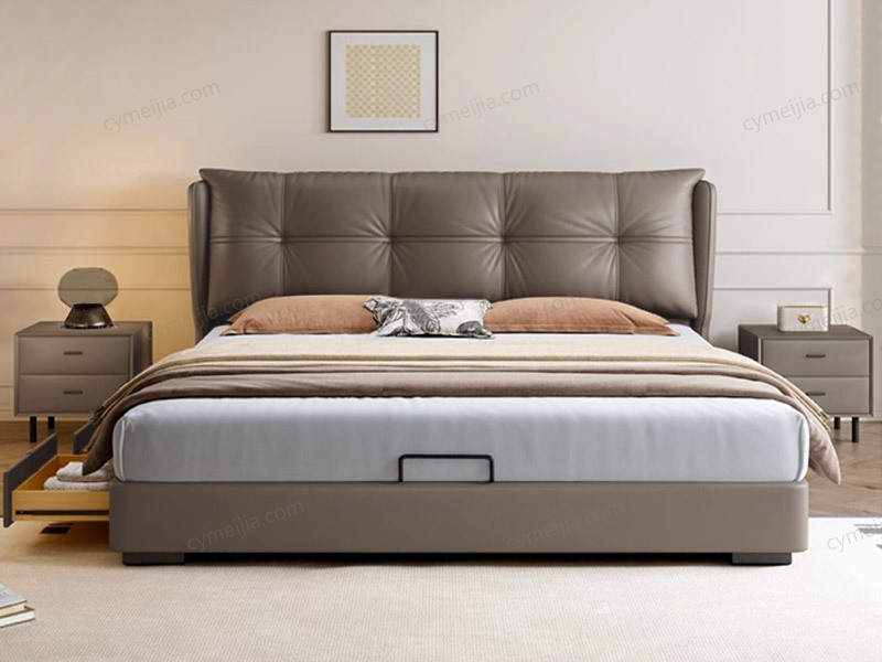 ◕ 床头选用优质仿真皮,触感细腻易打理,外观简约大气,为卧室营造高级整洁的视觉效果。
