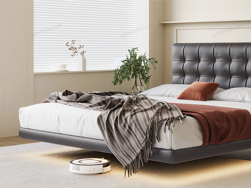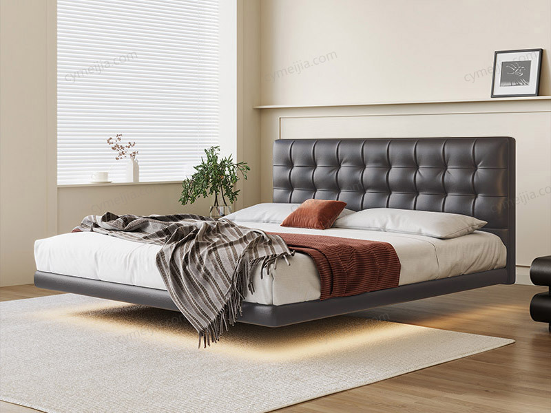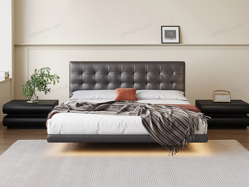 | 产品材质 : | 仿真皮+俄罗斯落叶松实木框架+高密度海绵+灯带+碳素钢脚+10公分松木排骨架 |