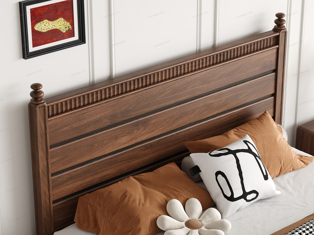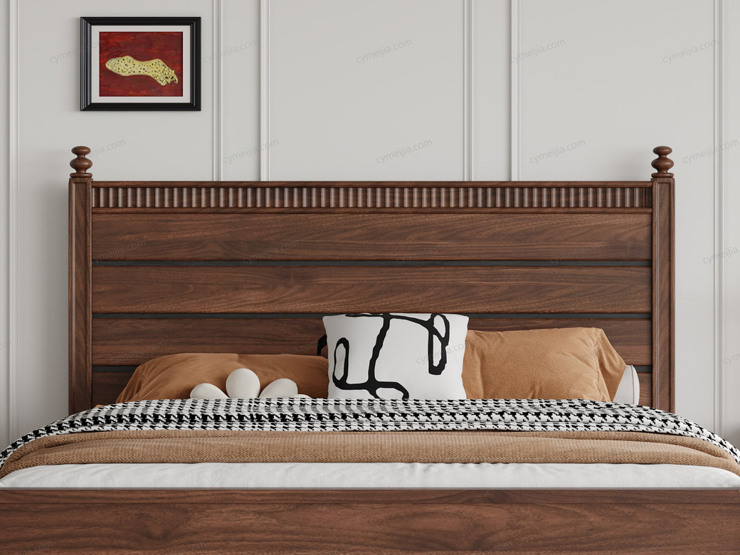 ☀ 床头立柱+格栅条设计复古,工艺精细,彰显匠心,配同系列实木床头柜,协调大气,营造复古温馨卧室氛围。
