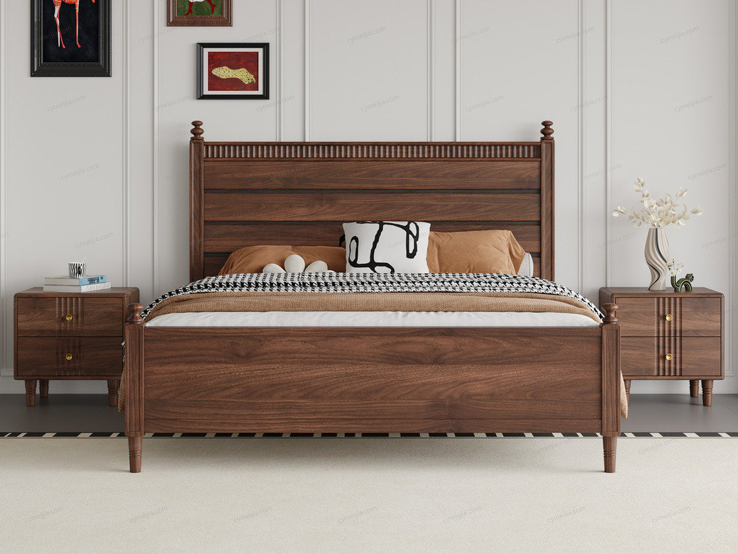 经典的中古风设计,以简约的形态和深沉的木色,轻松营造出复古、温暖且极具品位的卧室氛围。