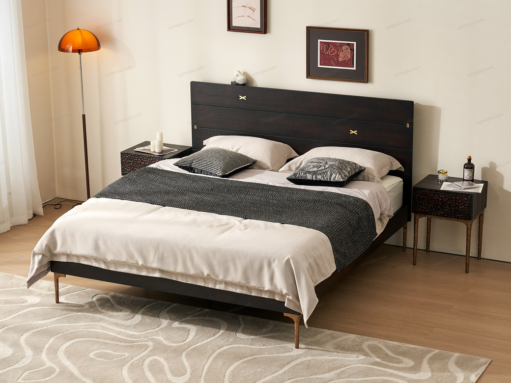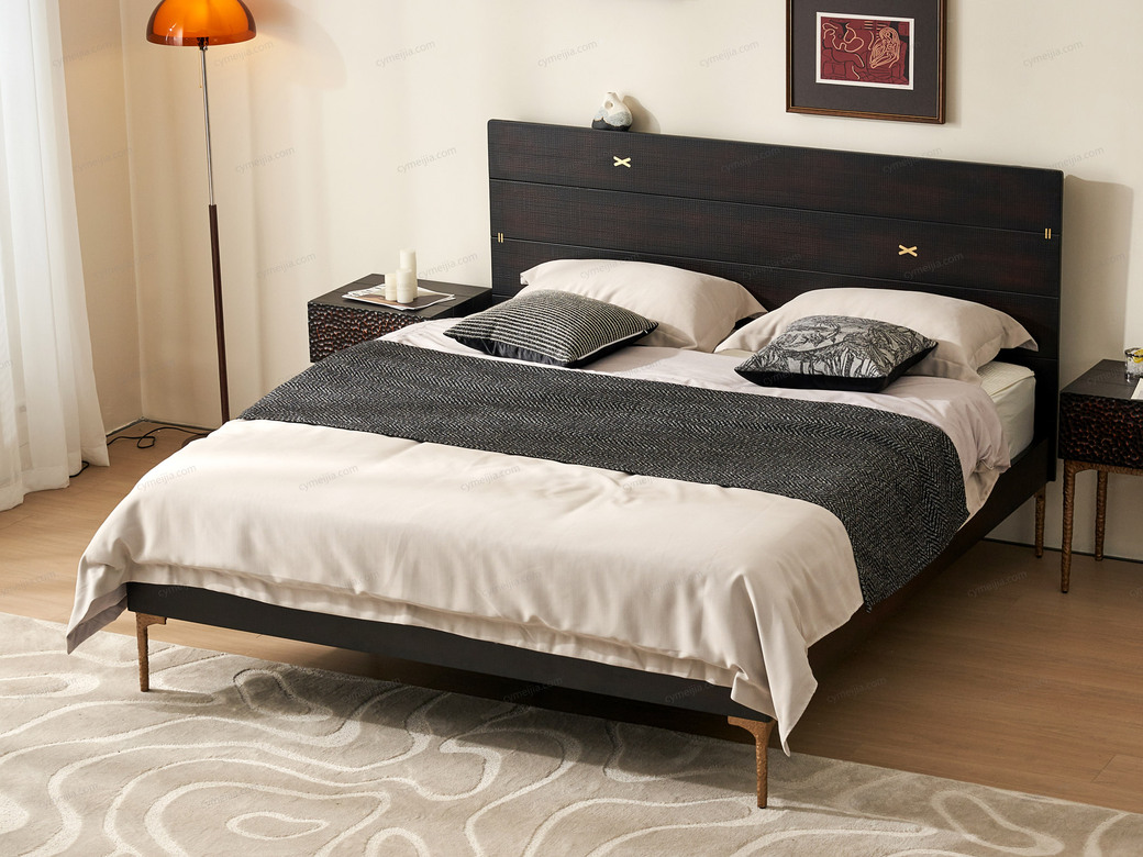 | 产品材质 : | 表面微雕进口橡胶木+复合金属材质喷金属漆+铜件+满铺燕尾油漆床板 |