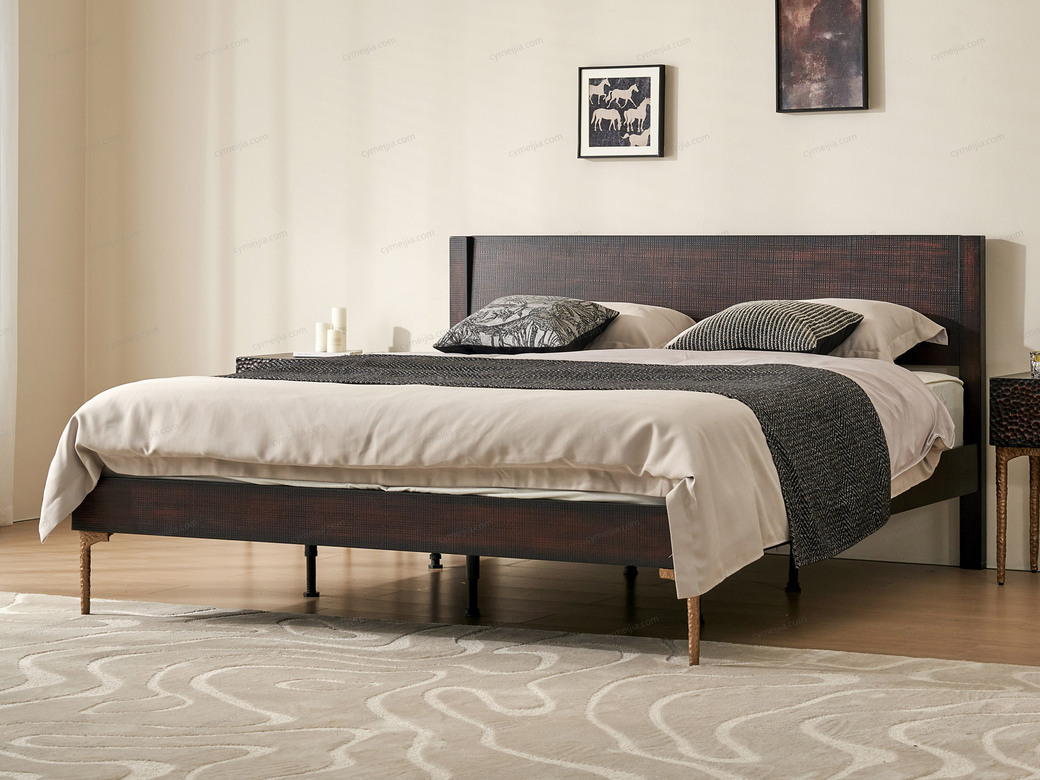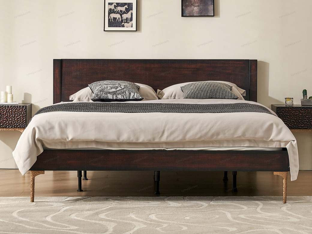 | 产品材质 : | 表面微雕进口橡胶木+复合金属材质喷金属漆+满铺燕尾油漆床板 |