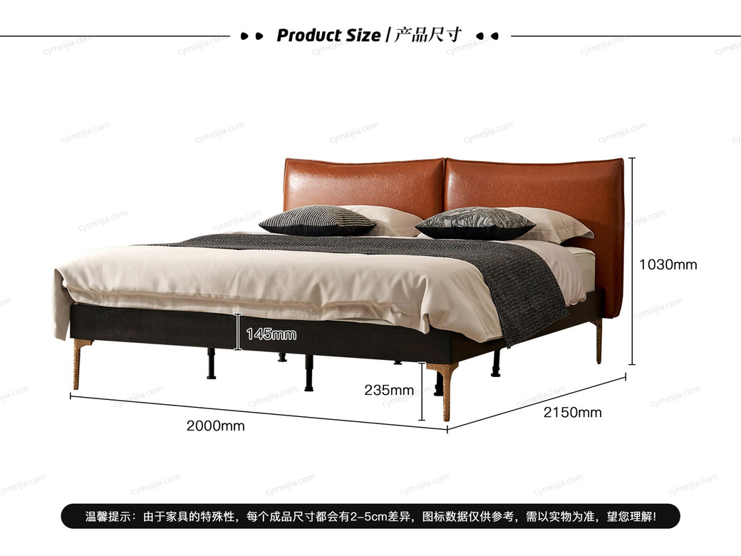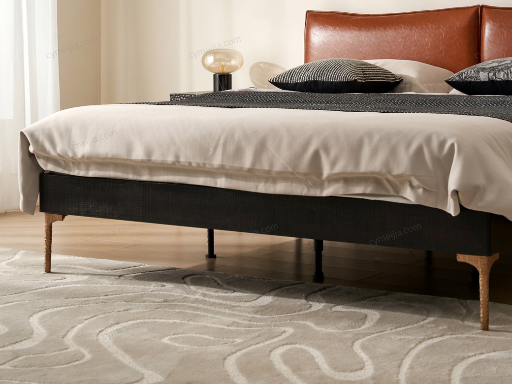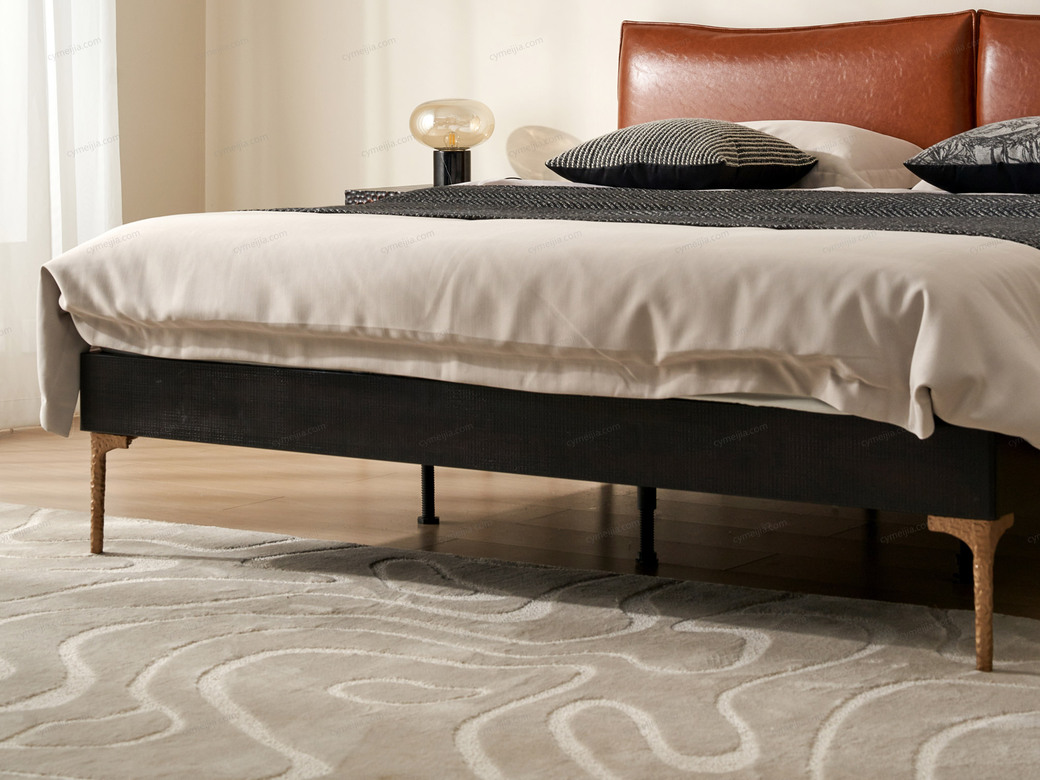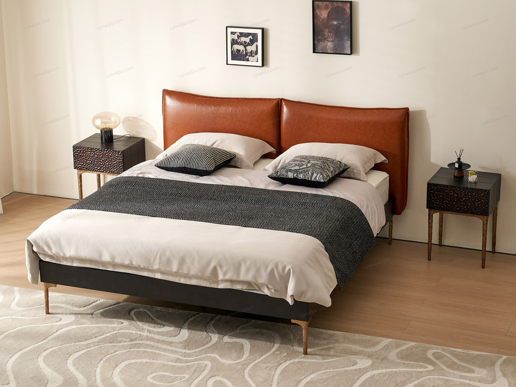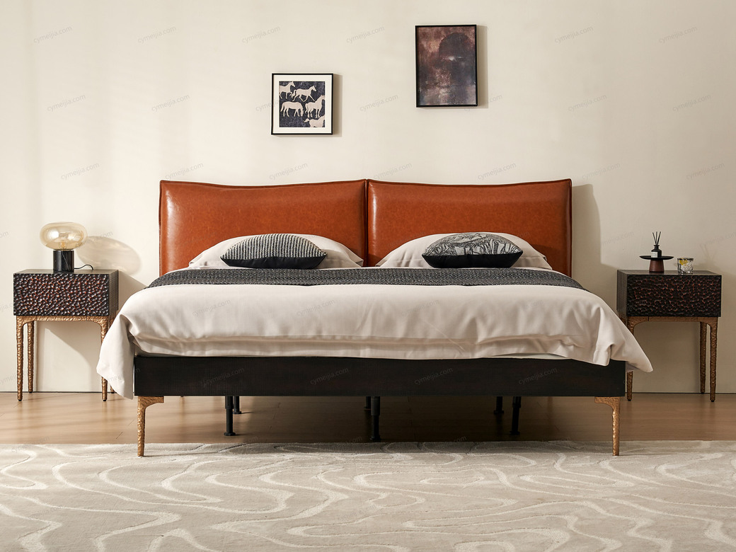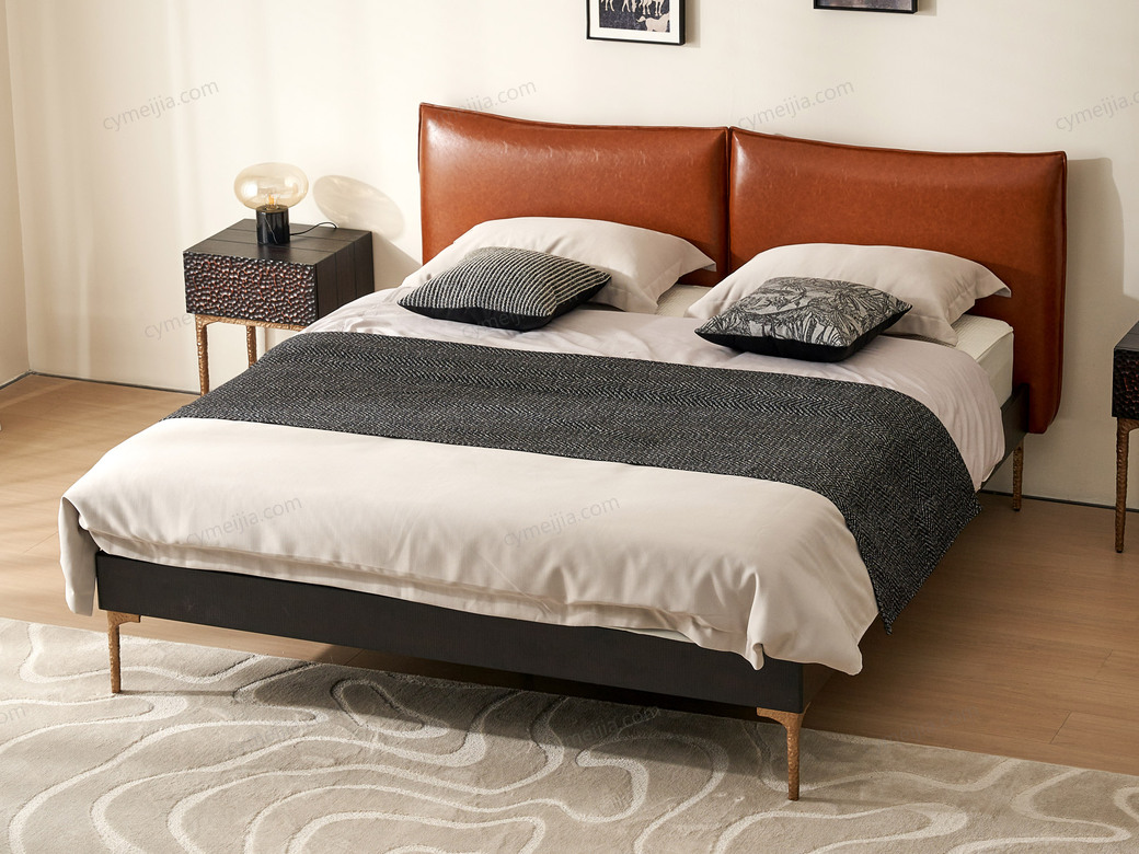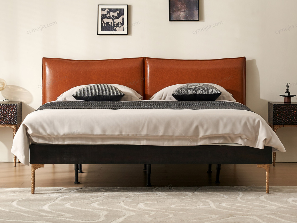 | 产品材质 : | 表面微雕进口橡胶木+油蜡仿真皮+高密度海绵+复合金属材质喷金属漆+满铺燕尾油漆床板 |
