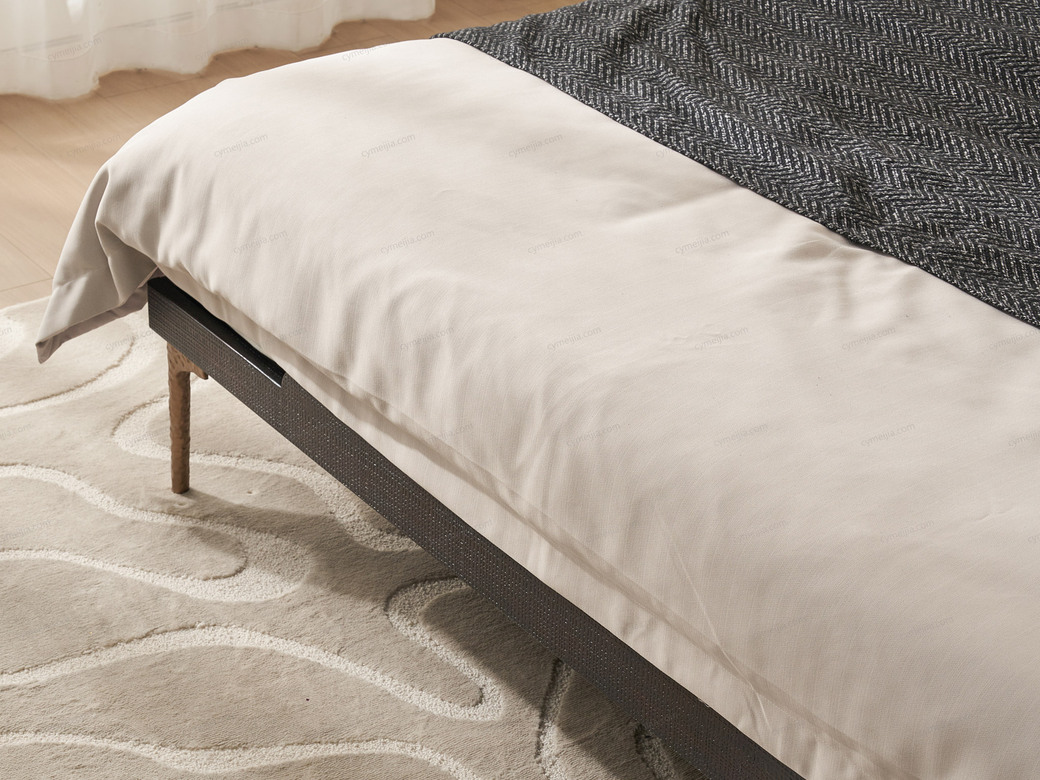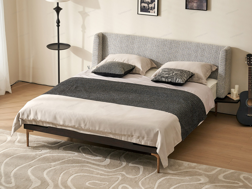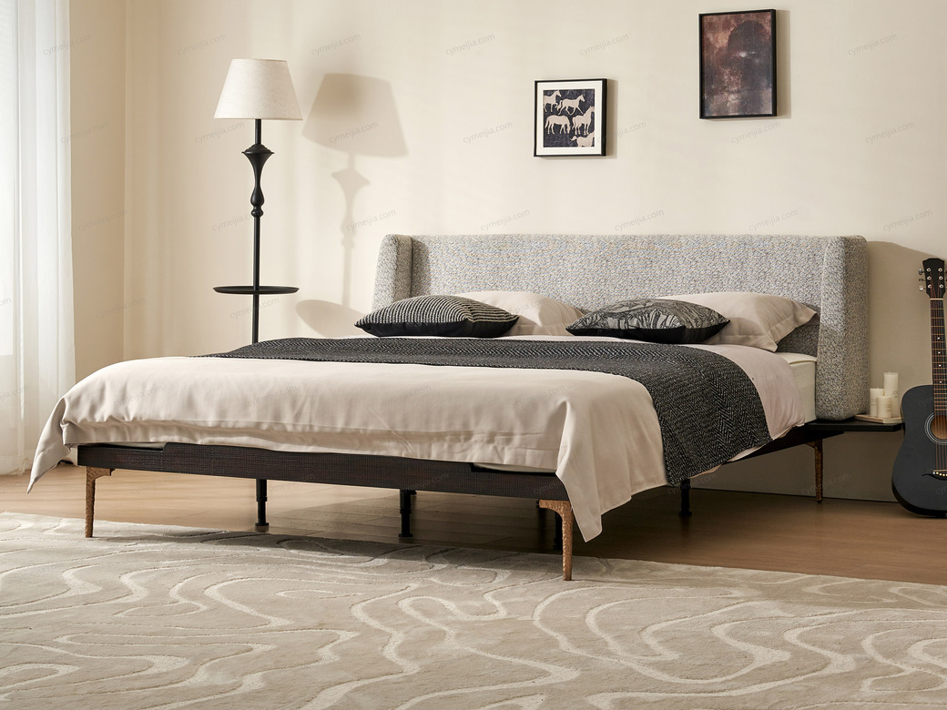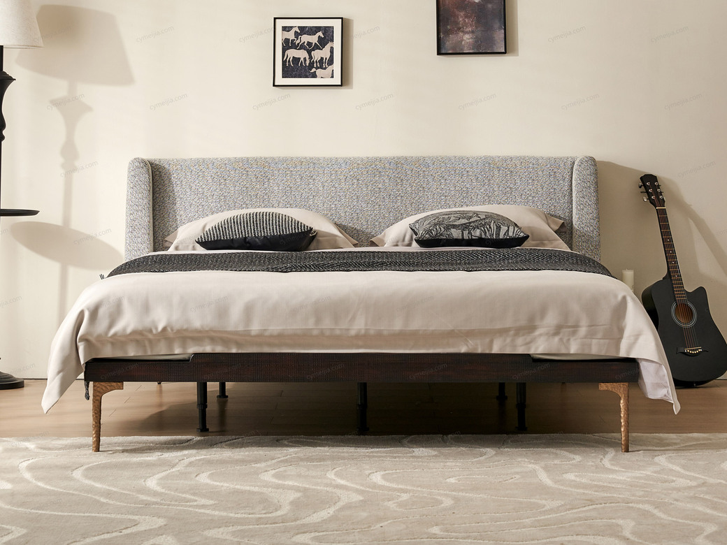 | 产品材质 : | 表面微雕进口橡胶木+科技布+高密度海绵+复合金属材质喷金属漆+满铺燕尾油漆床板 |