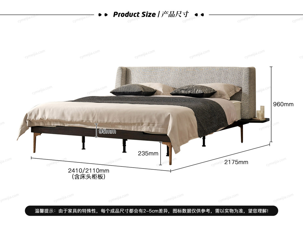 | 规格 : | 含床头柜板:长2175*宽2410*高960mm;不含床头柜板:长2180*宽1810*高960mm |