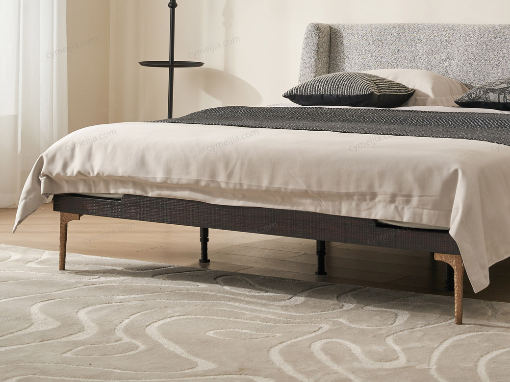 | 产品材质 : | 表面微雕进口橡胶木+科技布+高密度海绵+复合金属材质喷金属漆+满铺燕尾油漆床板 |