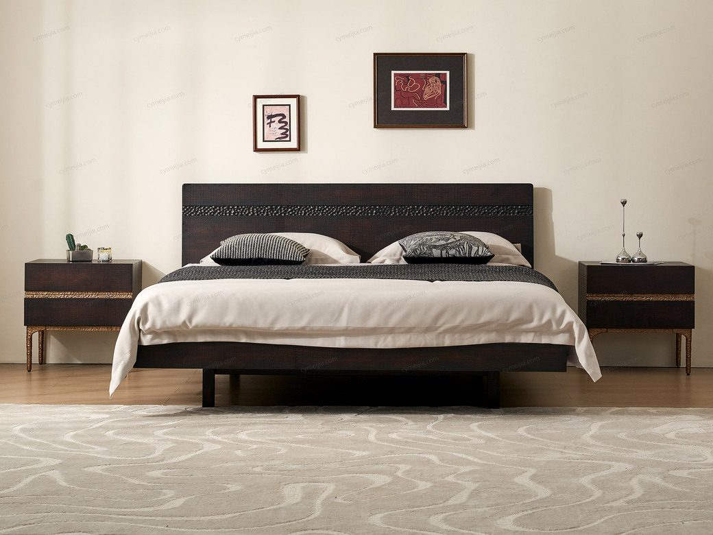 ☀ 复古微雕工艺:传统大板直拼工艺融合现代锻打锤纹肌理,质感复古而细腻。隐形床脚设计呈现轻盈悬浮感,简约线条让空间更显灵动。