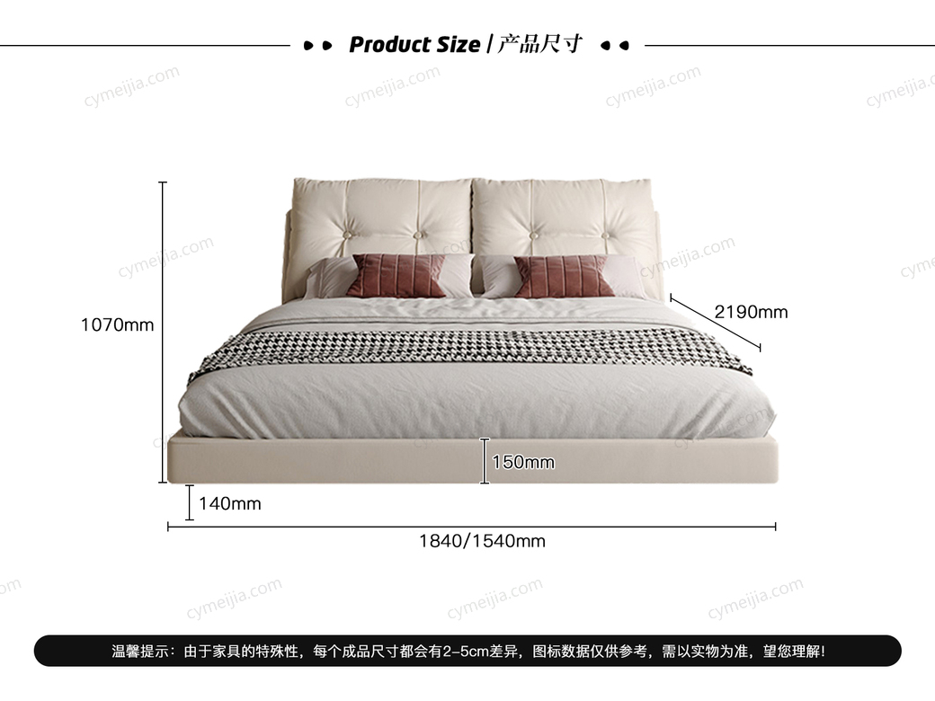 | 适配床垫 : | 长2000*宽1800*厚180-220mm |