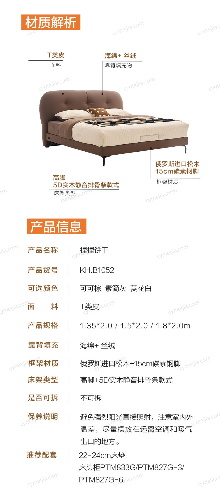 | 产品材质 : | 仿真皮+高密度海绵+俄罗斯进口松木+15mm碳素钢高脚+5D实木静音排骨架 |