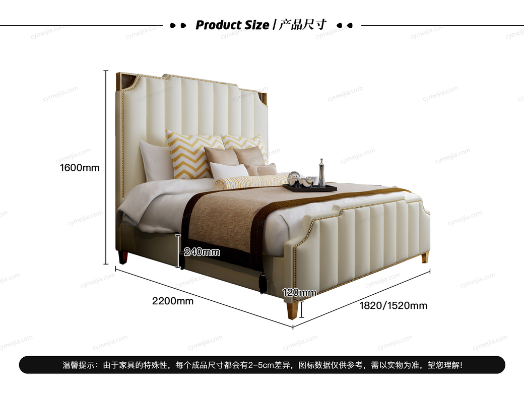 | 适配床垫 : | 长2000*宽1800*高(220-250)mm |