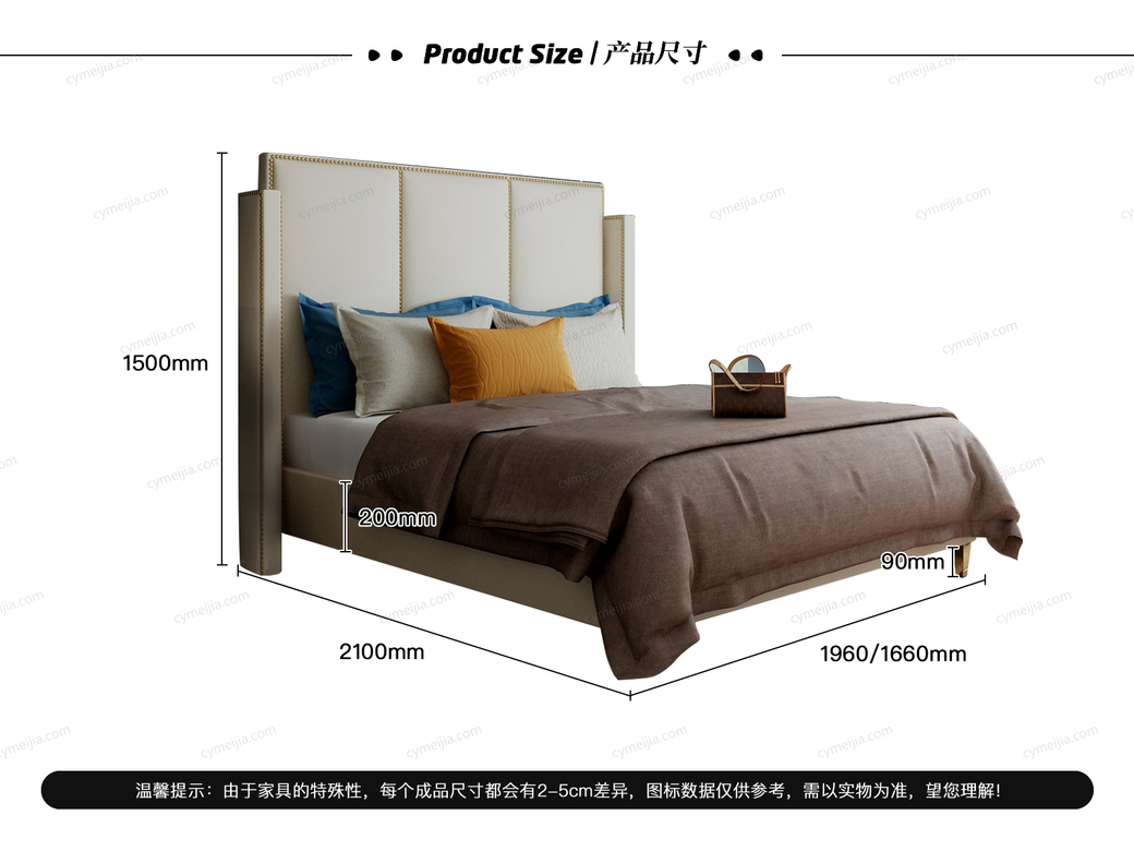 | 适配床垫 : | 长2000*宽1800*高(220-250)mm |