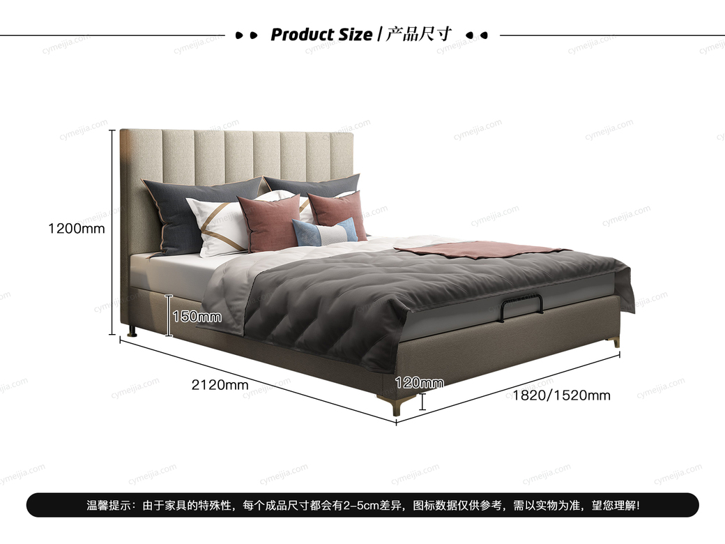 | 适配床垫 : | 长2000*宽1800*高220mm |