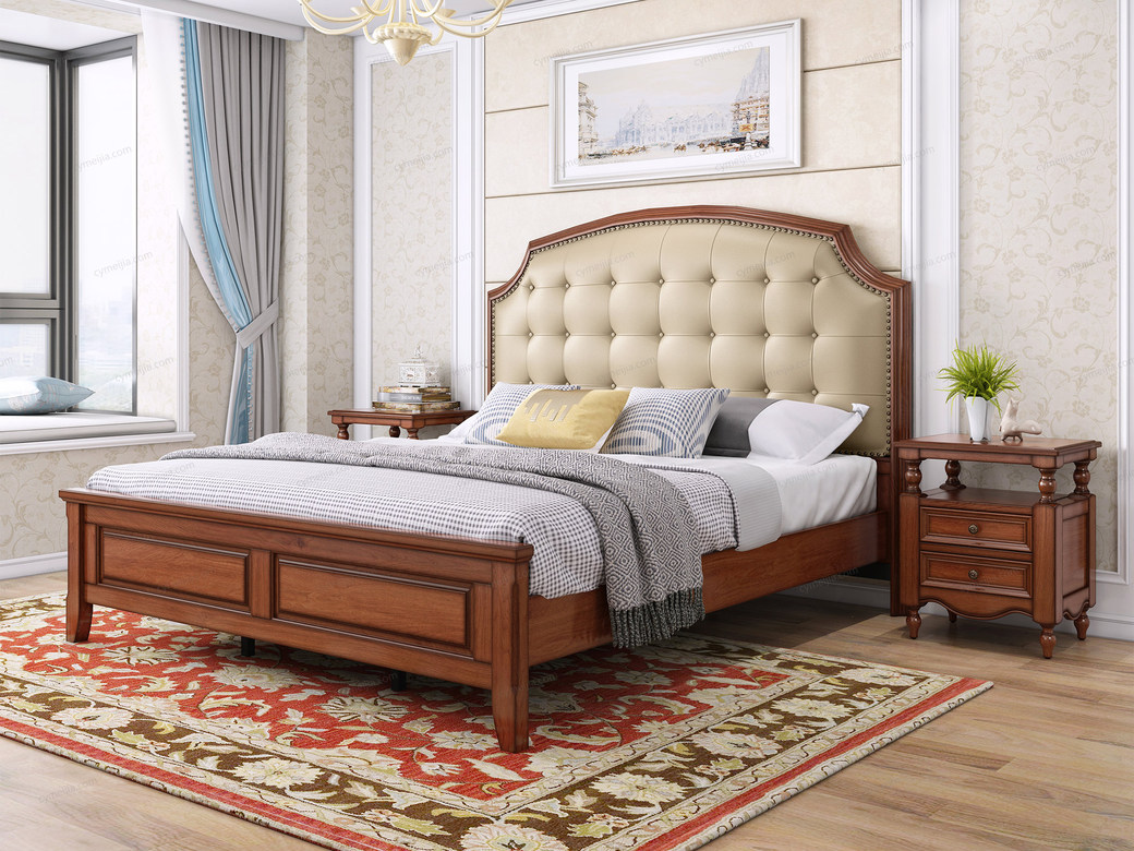 | 产品材质 : | 北美鹅掌楸木+水性漆+仿真纳帕皮+松木床板条 |