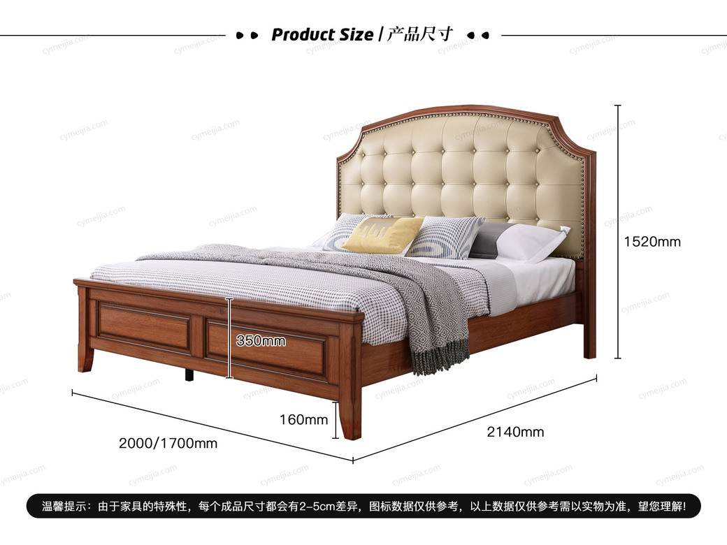| 产品材质 : | 北美鹅掌楸木+水性漆+仿真纳帕皮+松木床板条 |