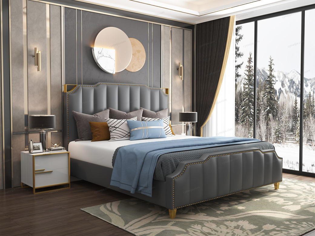 | 产品材质 : | 仿真皮+实木夹板+金属床脚 |