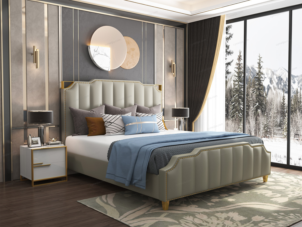 | 产品材质 : | 仿真皮+实木夹板+金属床脚 |