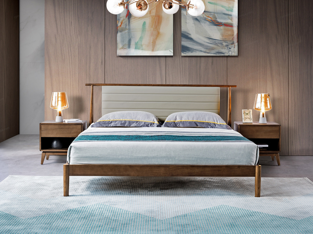 | 产品材质 : | 北美进口白蜡木+仿真皮软靠+多层实木板+松木床板条 |