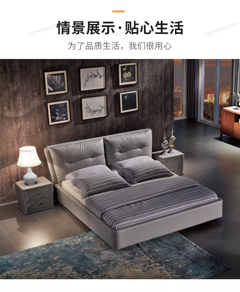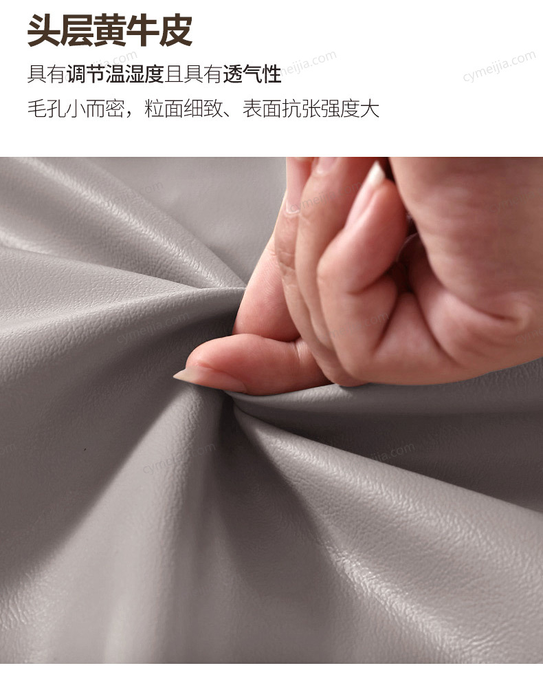| 产品材质 : | 接触面进口头层黄牛皮+实木框架+十公分松木排骨架+高弹海绵 |